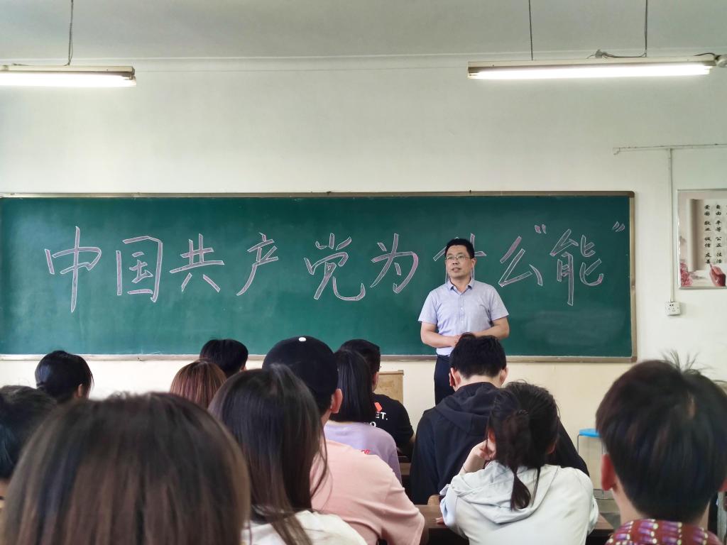 辅导员孙运表为所带学生讲授“庆建党百年 追溯党的百年光辉历程”之“中国共产党为什么能”专题党课。